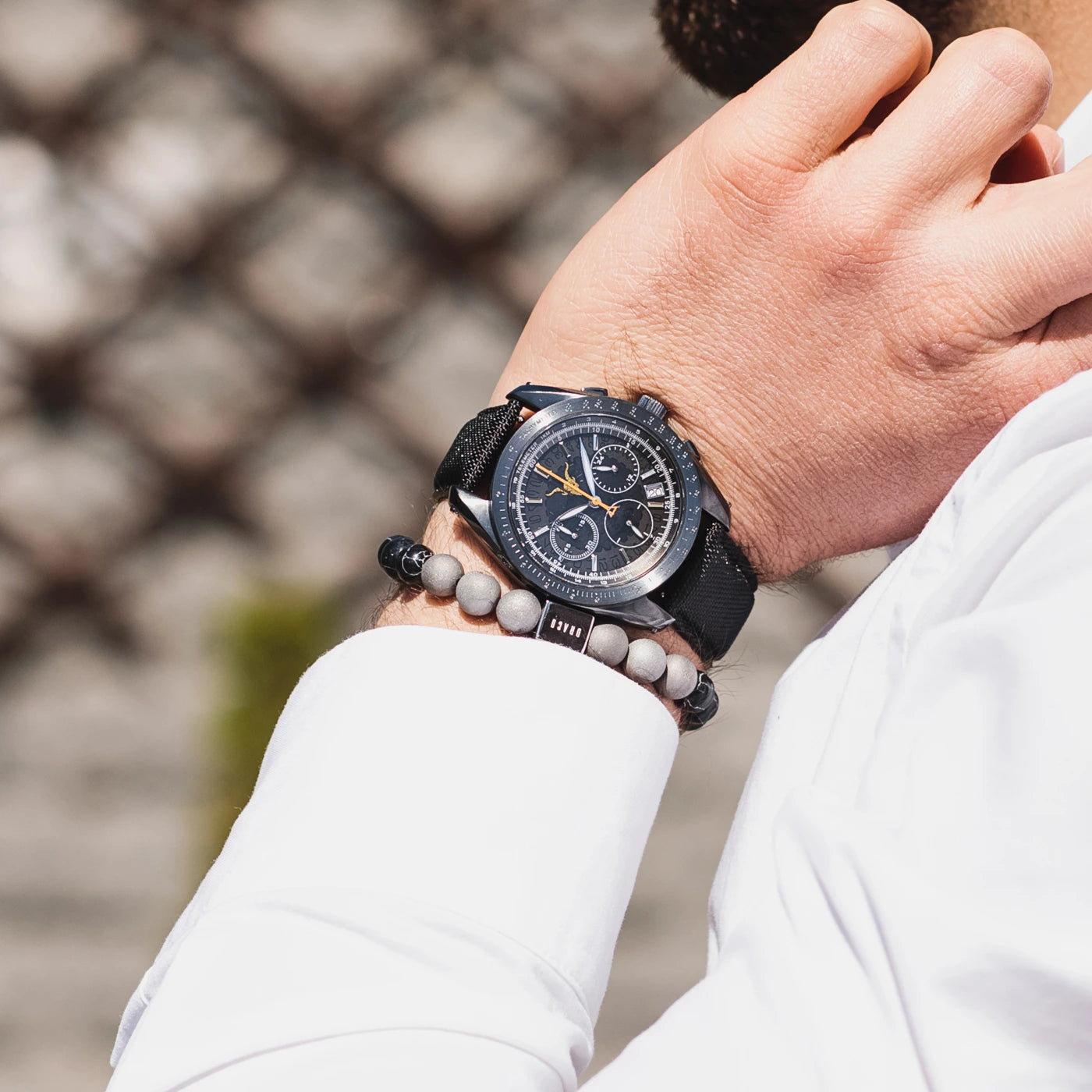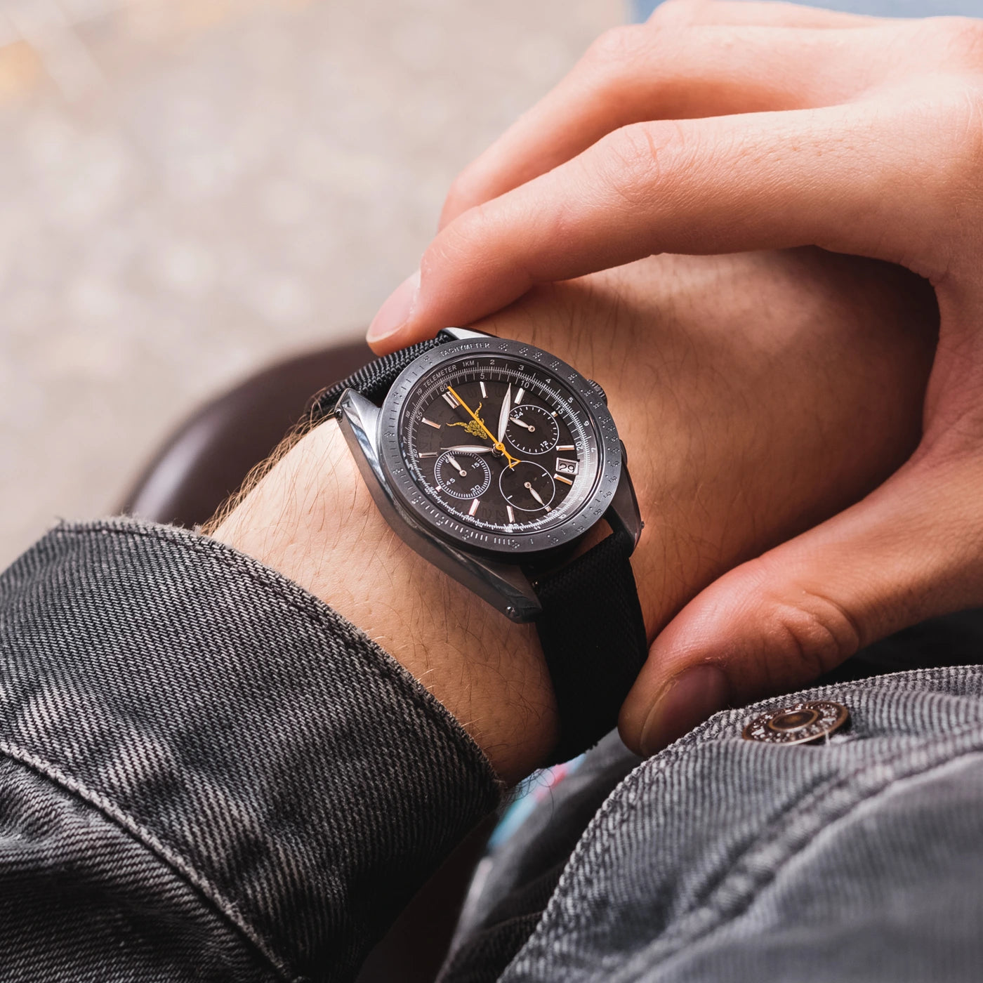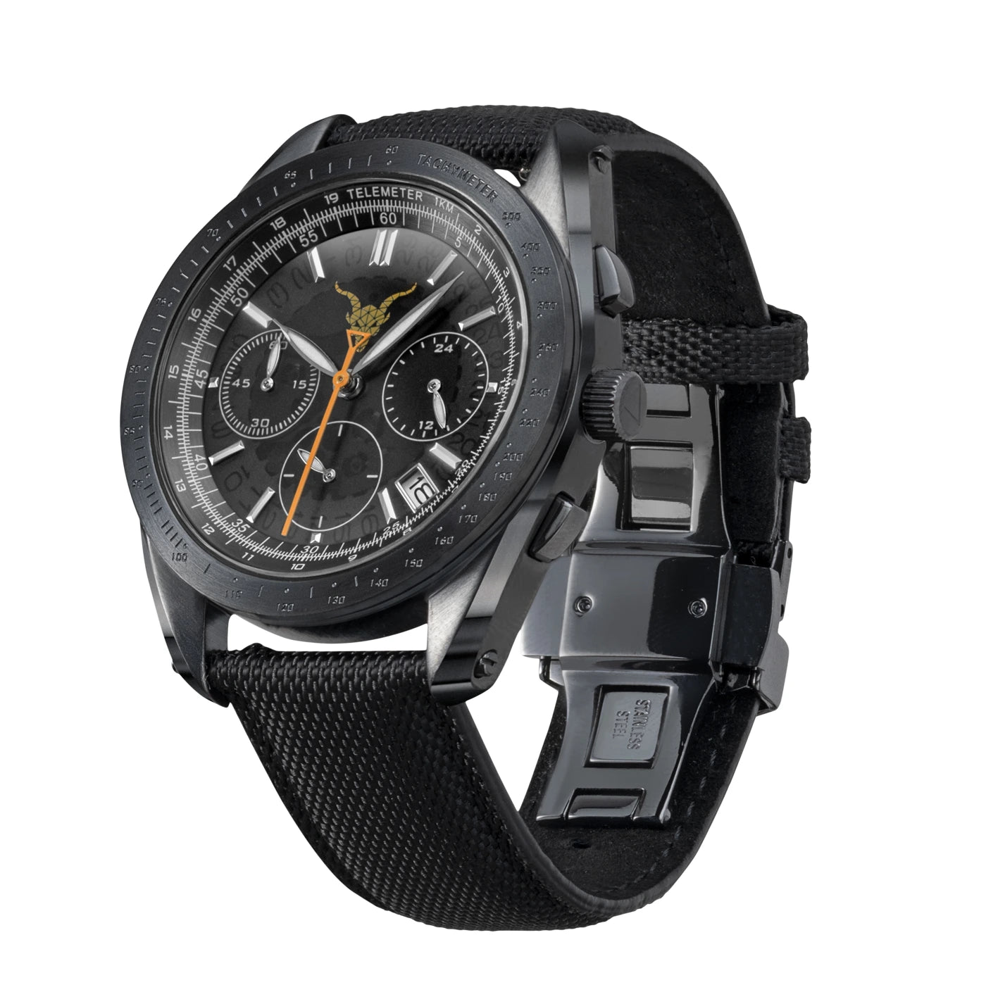 Functii rare – tahimetru gravat, telemetru si sub-cadrane functionale precum 60min, 24h si secundar.
